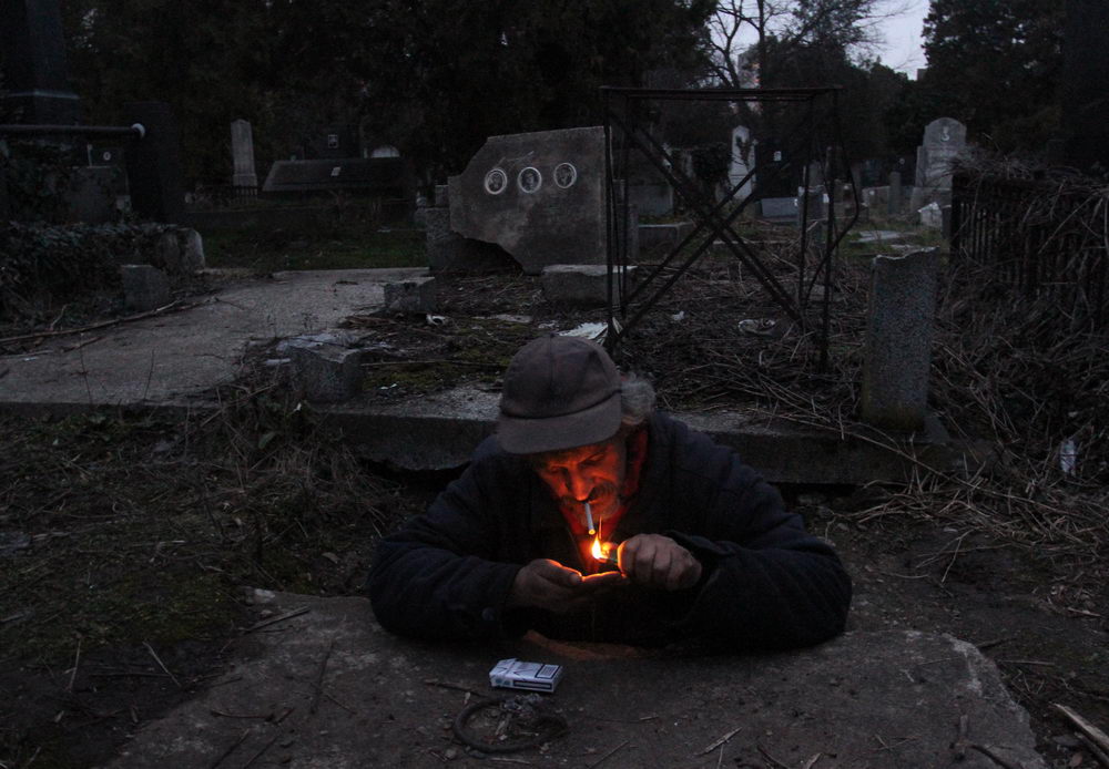 "Nije lako videti živog čoveka kako izlazi iz grobnice", kaže. Noću se plaši narkomana na groblju. Razbacani špricevi nalaze se i u blizini grobnice u kojoj živi Bratislav.