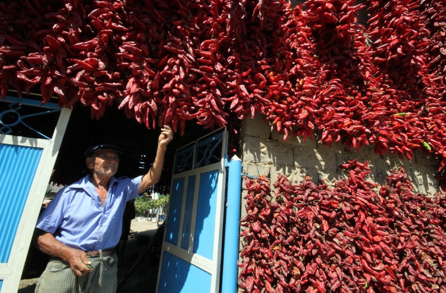 „ Kad počne da se bere, onda se doteruje, pere se, kači se na sunčana mesta gde se suši paprika, onda se stavlja u sušare, osuši se, onda se „zgruva“ i melje se u mlinu. Celo selo jedno dva meseca se crveni tako, i kasnije, zidovi su slobodni.“