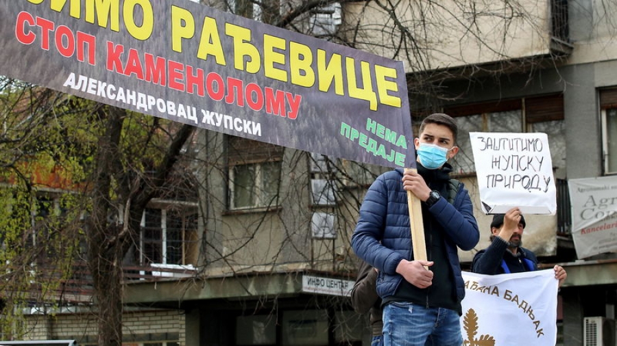 U talasu ekoloških buna i protesta, u centru Aleksandrovca je u petak (16. april) održan protest za odbranu Rađevice gde se planira kamenolom. Protest pod nazivom „Minut do 12“ zbilja je počeo u 11:59.