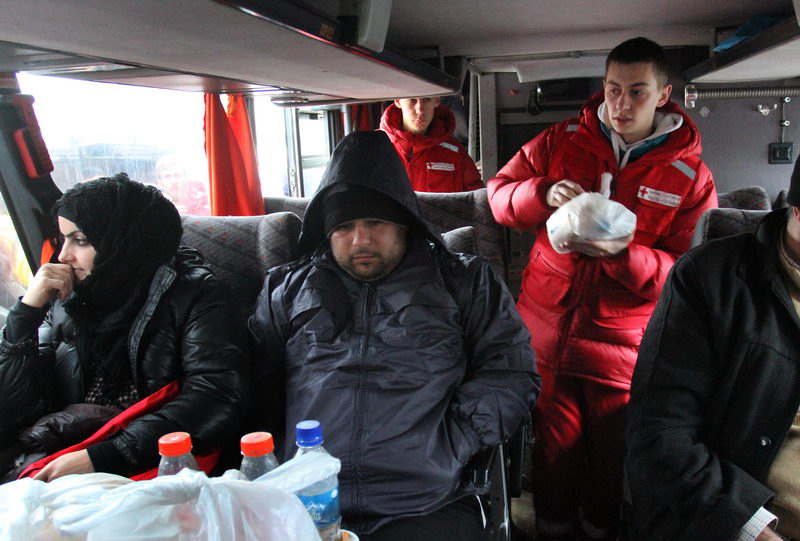 Autobusi kojima su u Adaševce stigli iz Preševa i Dimitrovgrada, čekaju da se okupi dovoljan broj izbeglica da ih prevezu do železničke stanice u Šidu. U privremenom prihvatnom centru, majke hrane decu, a očevi ih oblače u toplu i suvu odeću, zahvaljujući pomoći Komesarijata za izbeglice, Crvenog Krsta i drugih humanitarnih organizacija.